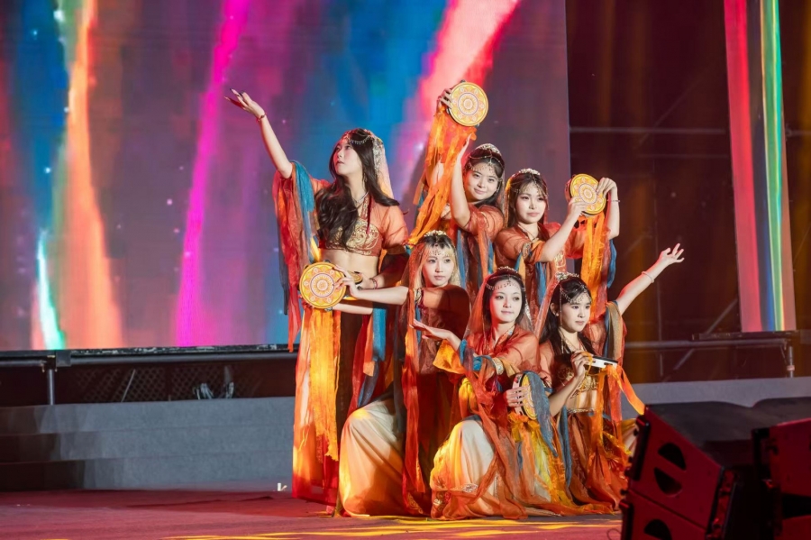 第三篇章“奔赴·未来答卷”节目异彩纷呈。由校舞蹈团带来的舞蹈《我们的田野》描绘了乡村振兴的美丽画卷;合唱团表演歌曲串烧《时光留声机》以时光为序,唤起80、90、00、10年代不同时代的深刻记忆,描述了日新月异的社会变化。设计学院舞蹈《盛开》寓意青春如花,绚烂绽放。社团展示《缤纷社团》将晚会推向高潮,舞蹈团、拉丁舞社、独一舞爱社、cosplay社、街舞社纷纷亮相,青年以爱好为笔,绘制斑斓岁月。表演唱《飞云之下》以深情悠扬的歌声寄托了对未来的无限憧憬。