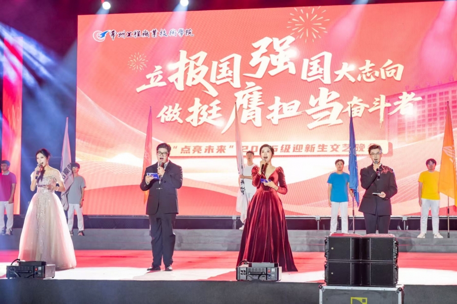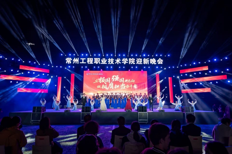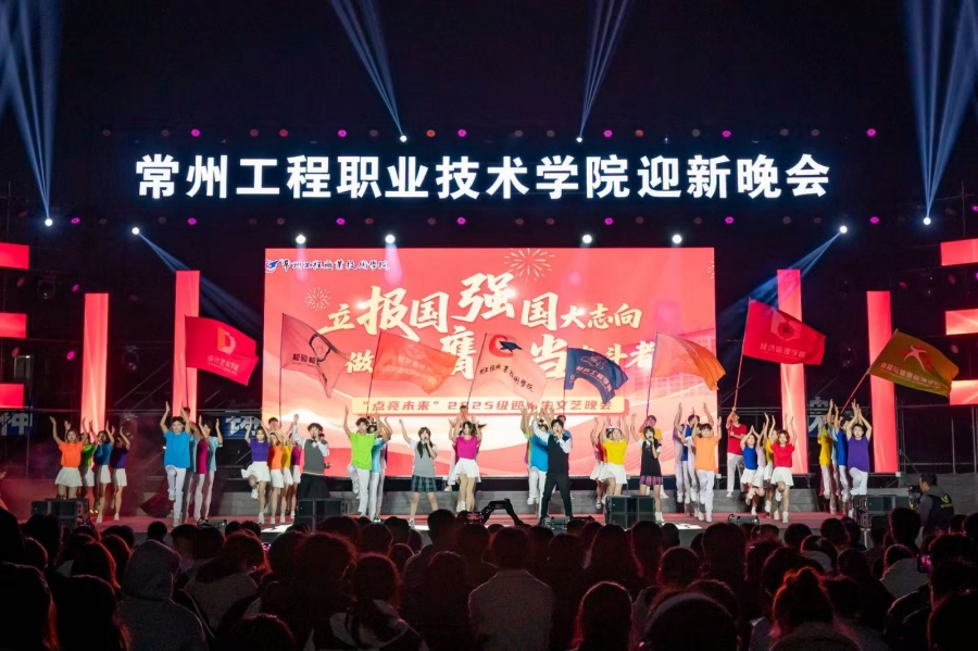 10月27日晚,“点亮未来”2025年迎新生文艺晚会在学校田径场隆重举行。学校党委领导杨劲松、基国林、周勇、张雪华、黄一波、徐黎明、蒋小燕出席晚会,学校各职能部门、二级学院教职工与全体2025级新生共同观看了这场青春盛宴。校企合作单位中车戚墅堰机车有限公司、医校合作单位联勤保障部队第九〇四医院特邀参与演出。