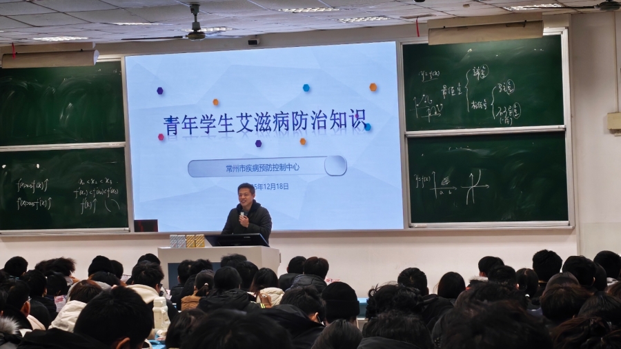 12月18日晚6点,由校团委主办的“科学防艾,守护青春”艾滋病防治知识主题讲座在教学楼第五阶梯教室顺利开展。活动特邀常州市疾病预防控制中心科长王金塔担任主讲,来自各学院的近260名学生积极参与,现场座无虚席。