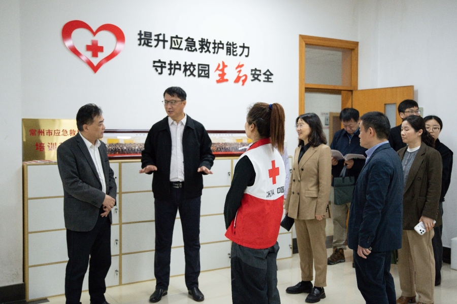 4 月 16 日下午,江苏省红十字会秘书长、党组成员林凤勇一行莅临我校调研常州高校红十字工作。常州市红十字会党组成员、副会长郑跃进,秘书长、办公室主任张涛等陪同调研。学校党委书记杨劲松、党委委员、副校长徐黎明,以及在常 12 所高校红十字会负责人共同参加调研与座谈。